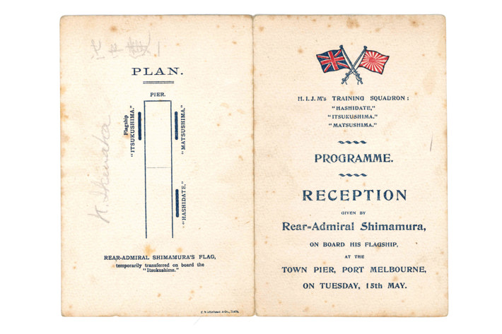 Programme for a reception given on-board the flagship of Rear-Admiral Shimamura, Port Melbourne Town Pier, 15th May 1905 (Port Phillip Heritage Centre collection)