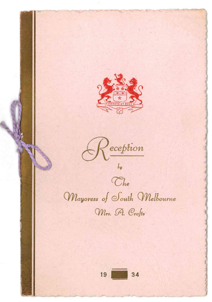Programme for a reception held by the Mayoress of South Melbourne, 1934 (Port Phillip Heritage Centre collection)
