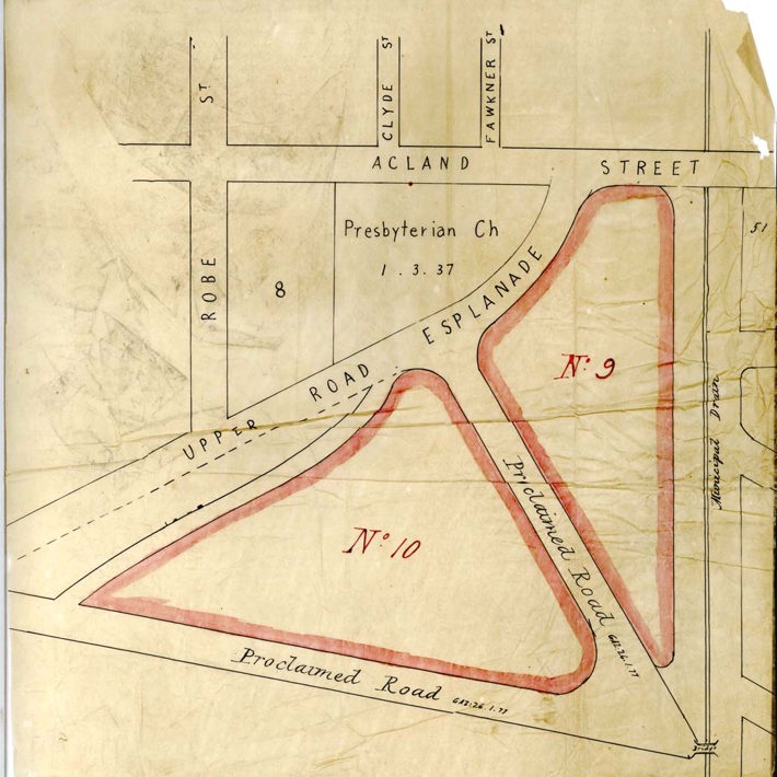 13. August, 1858 St Kilda Sea Bathing Co with reference to the planting of trees on the slopes between the Upper and Lower Esplanades and asking that provision be made for a pathway to its establishment where previously a gateway had been in existence in the fencing along the upper roadway.