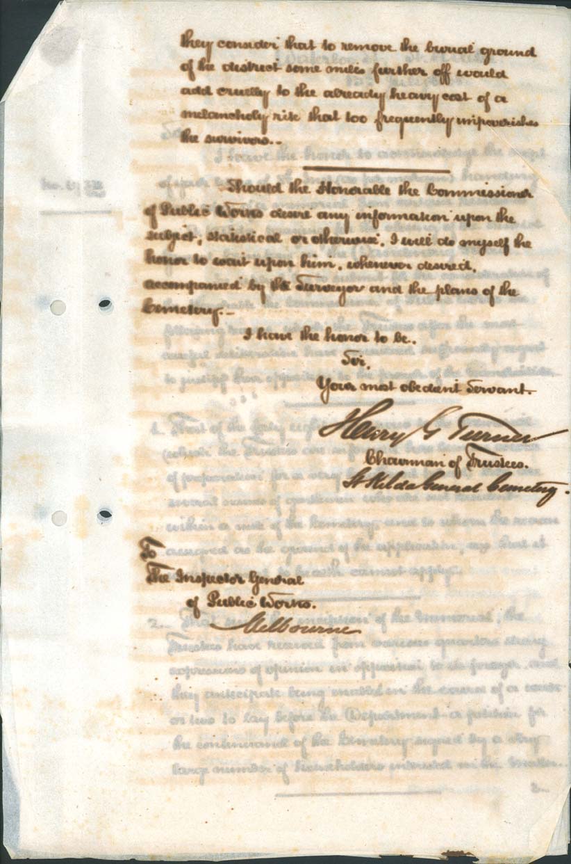 18. March and June 1865 Town Clerk Melbourne of the future control of the Yan Yean waterworks.