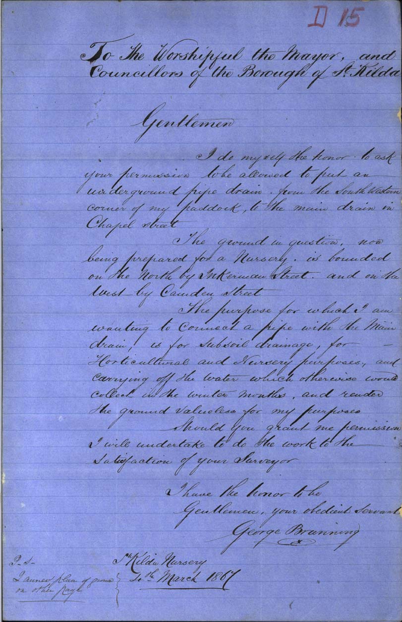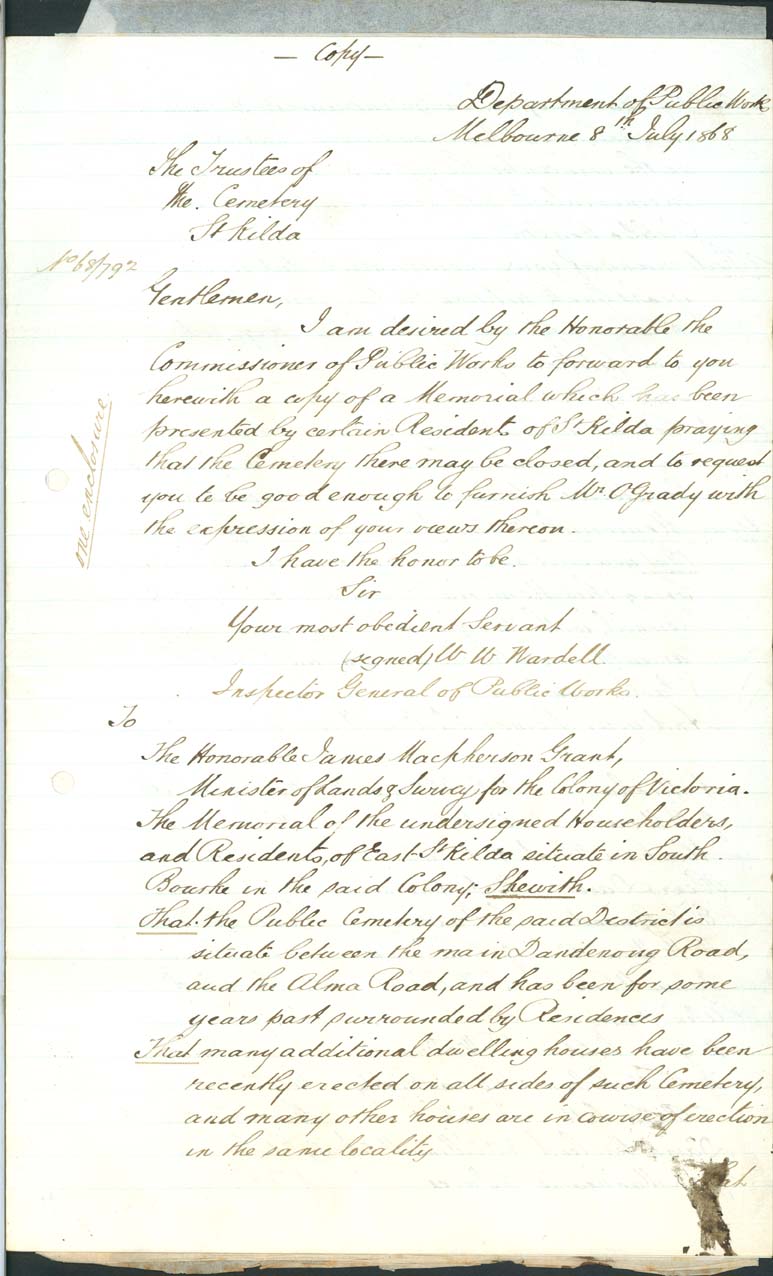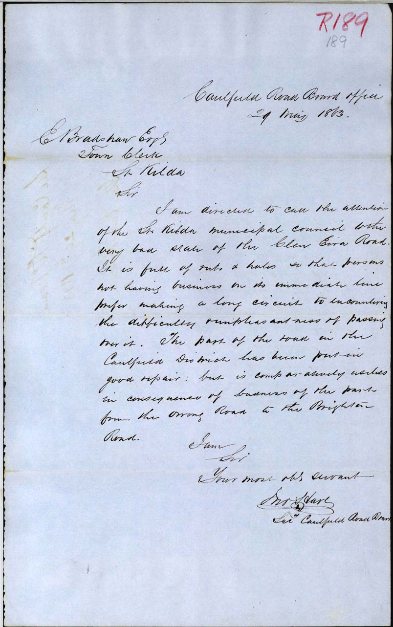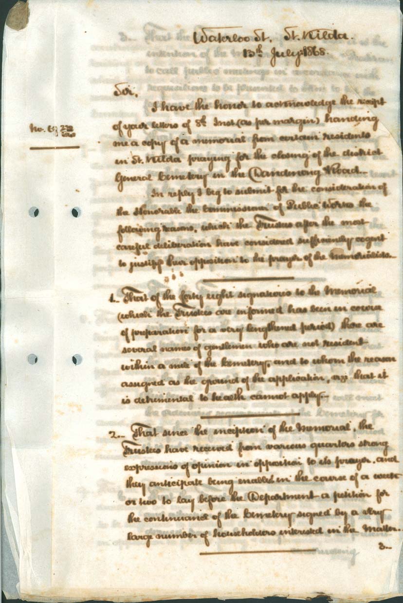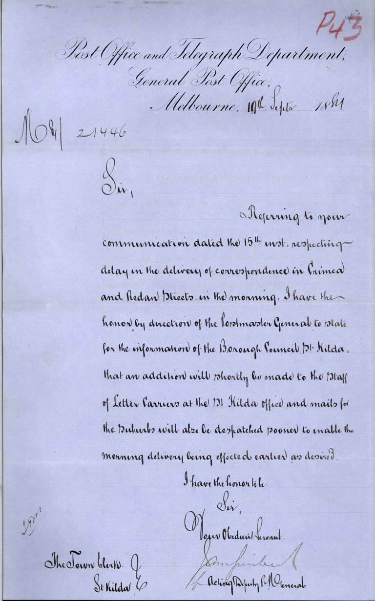 This index provides access to some of our earliest letters and other documents dating from the period between the formation of the St Kilda municipality in 1857 and the early 20th century. The correspondence provides a unique snapshot of the concerns of St Kilda residents and Council during this time.