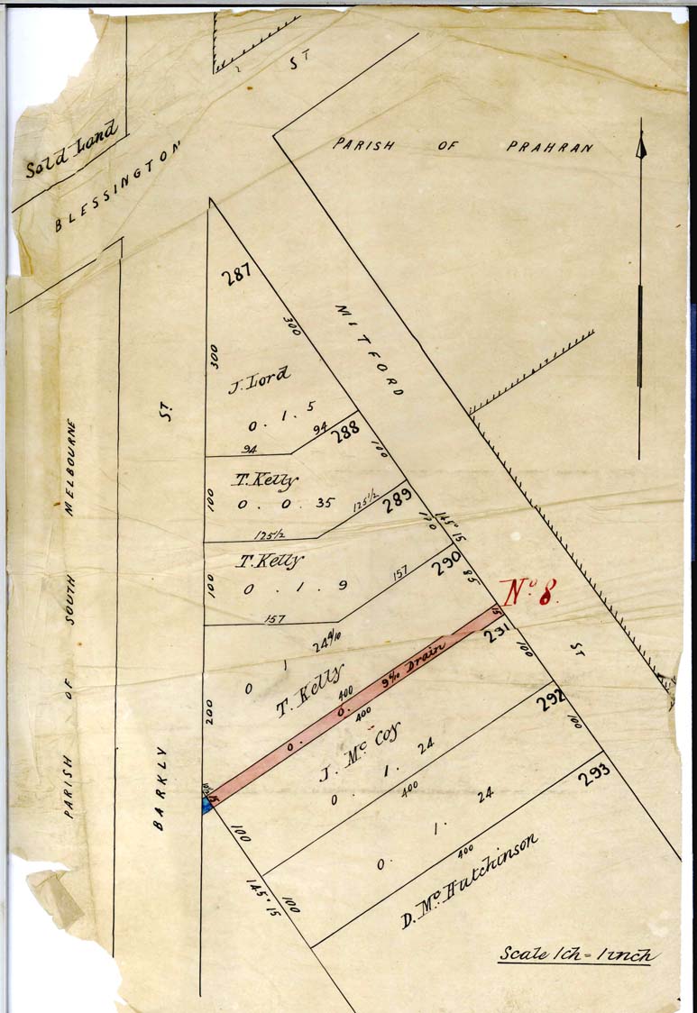 17. February, 1865 M J P Hanify asking for levels of Blessington Street between Brighton Road and Tennyson Street to assist his application for a water supply to houses in this section.