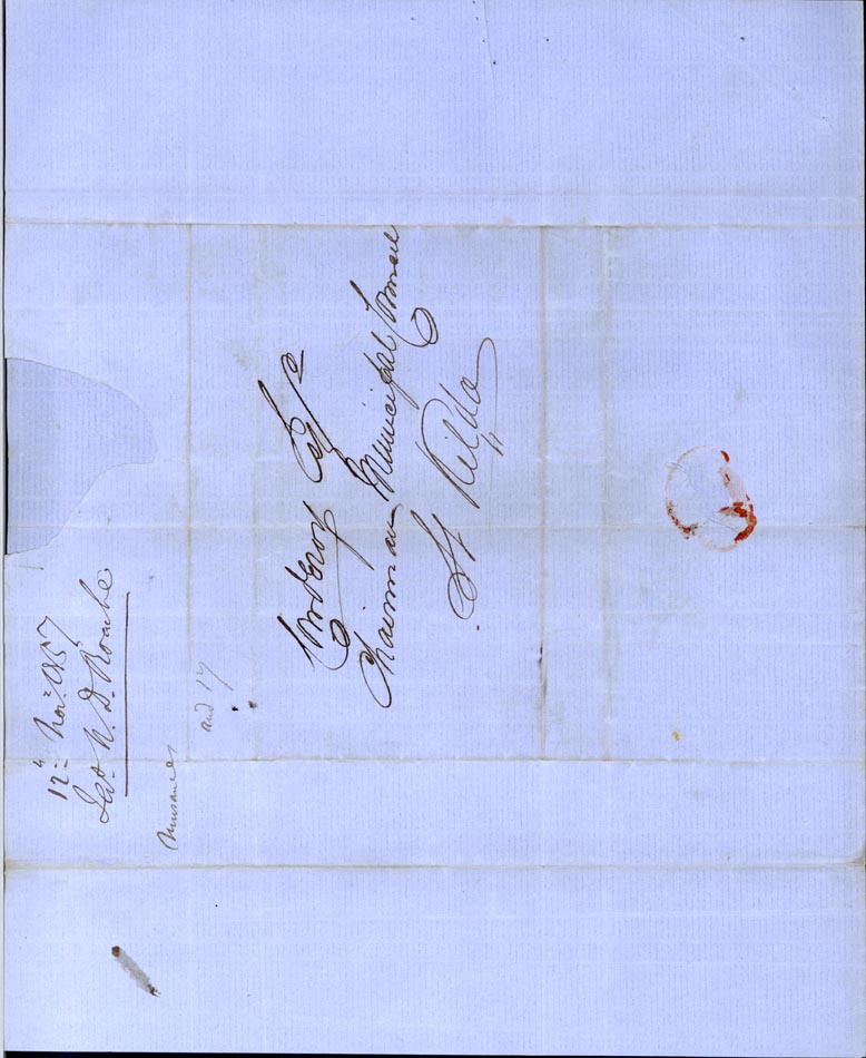47. September, 1860 Secretary Melbourne Garrick Club requesting use of hall to assist the "Taranake" Fund.