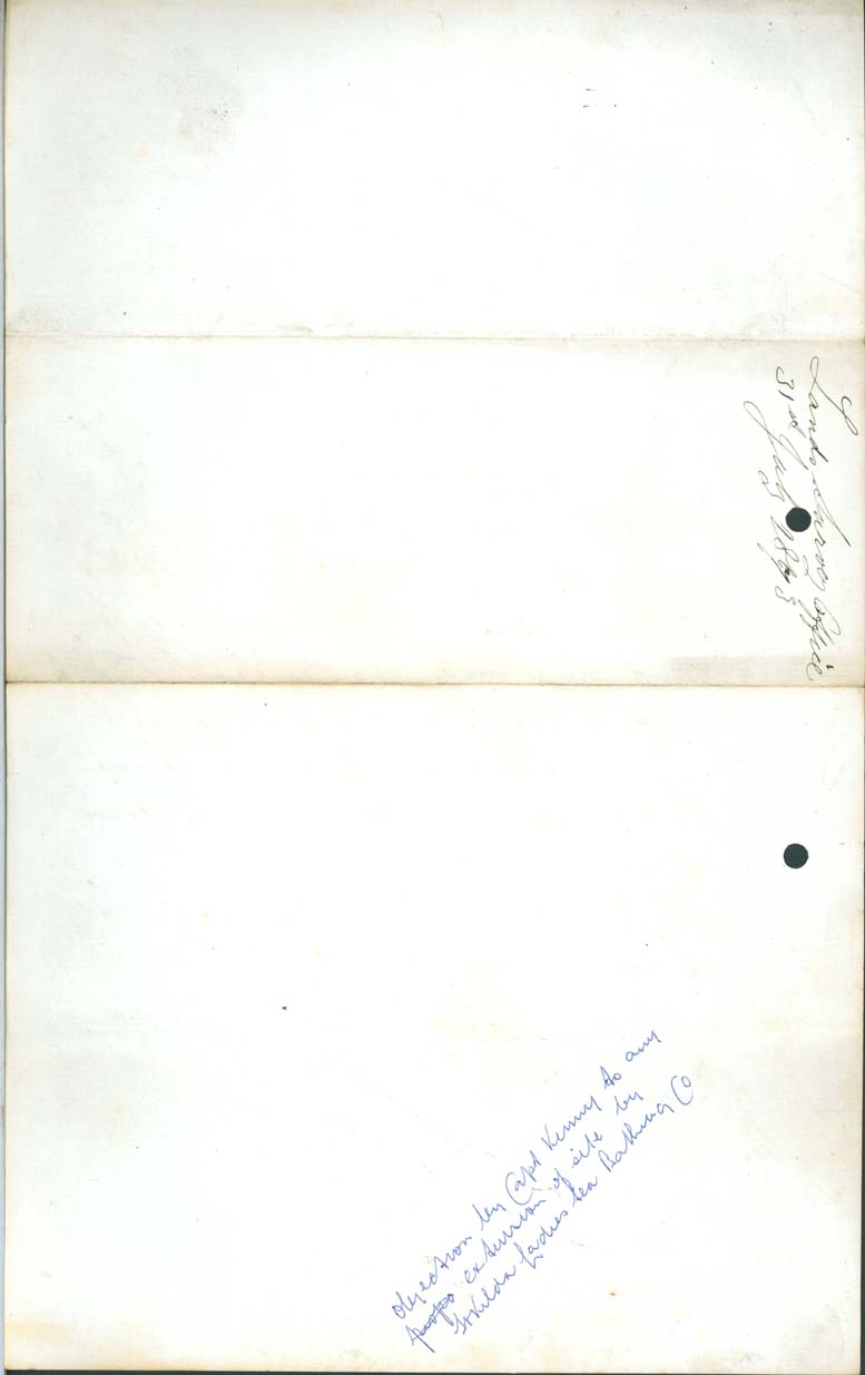 2. September, 1857 Department of Lands & Survey granting permissive occupancy of 2 acres adjacent to Creek (Elster) and on West side of Barkly St for an abattoir in accordance with plan enclosed.