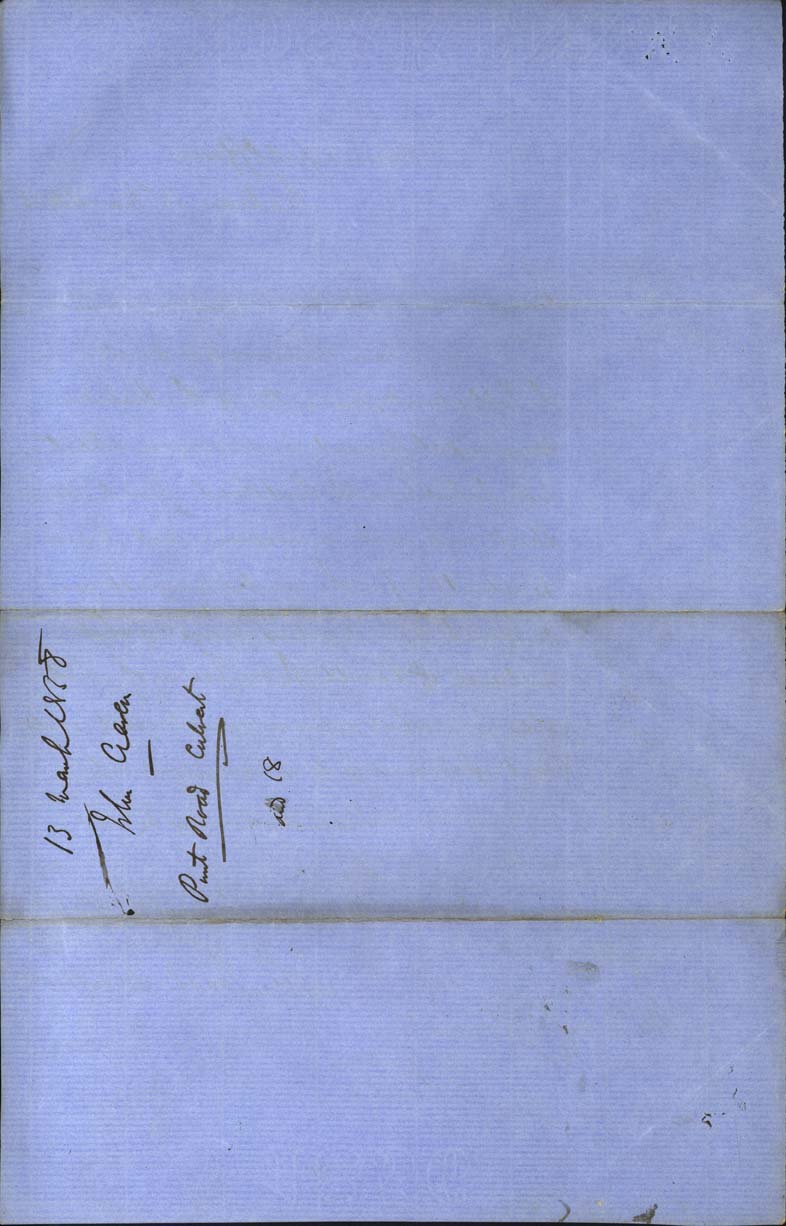 3. March, 1859 Alfred Bliss asking for confirmation of his belief that the Slaughter House on the Quarantine reserve at Point Ormond will be removed.