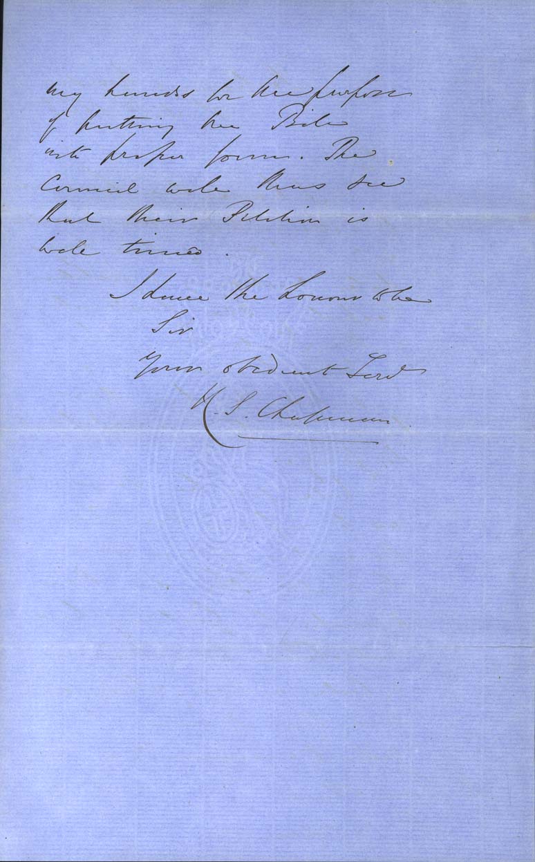 3. August, 1864 Hon. S H Bindon asking for use of Town Hall on Saturdays for purposes of the proposed Savings Bank.