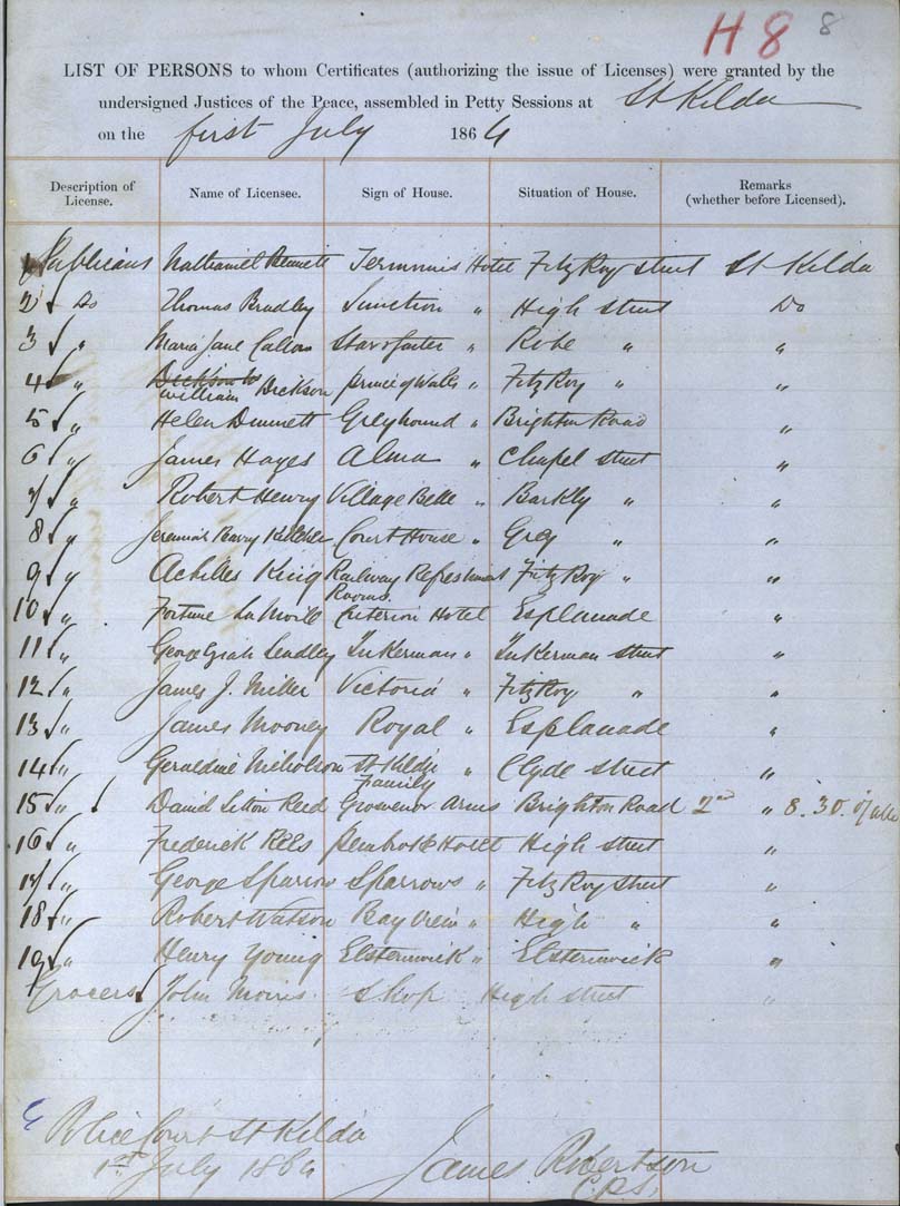 13. February, 1860 32 Residents jointly signing a request that, now the Yan Yean supply has been laid on, Stand Pipe be placed at or near the Greyhound Hotel, Brighton Road.